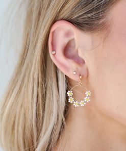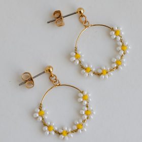 FINAL SALE – Avery Circle Beaded Flower Drop Earrings