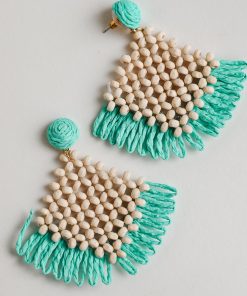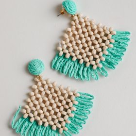 FINAL SALE – Bethany Teal Beaded Straw Statement Earrings